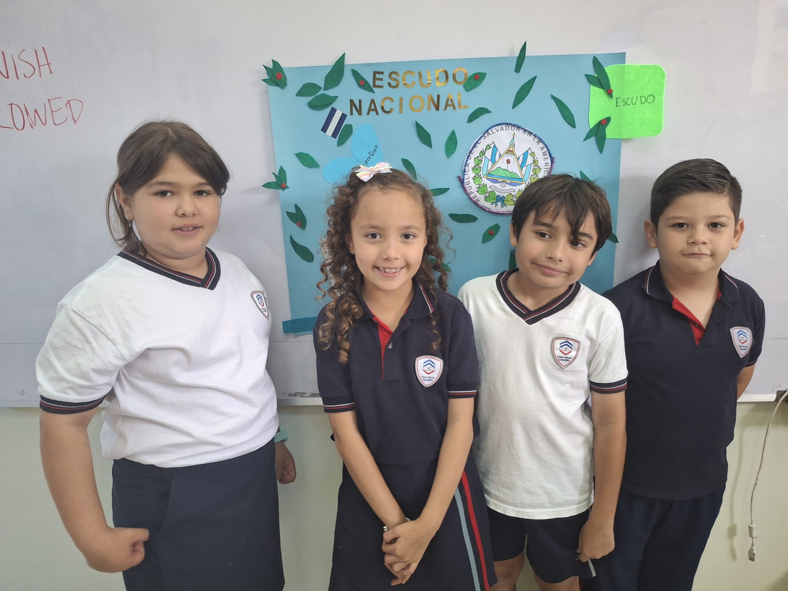 Los estudiantes de segundo grado elaboraron coloridos carteles sobre los símbolos patrios de El Salvador y compartieron sus conocimientos en una exposición llena de entusiasmo y orgullo nacional.
